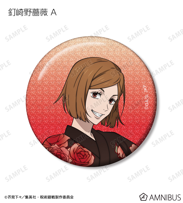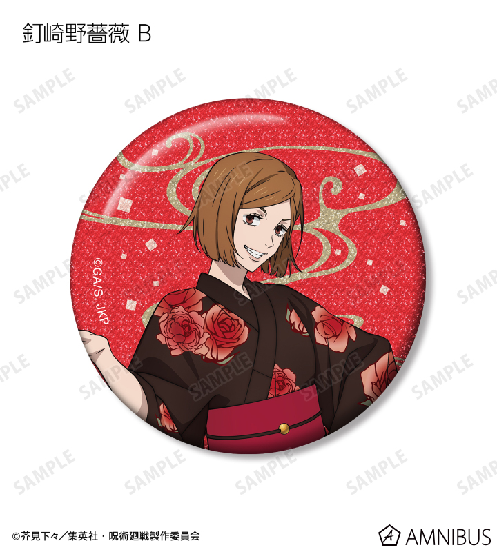 TVアニメ「呪術廻戦」×「浅草花やしき」のコラボレーションアイテム「描き下ろし 浴衣ver. トレーディンググリッター缶バッジ」の登場です。