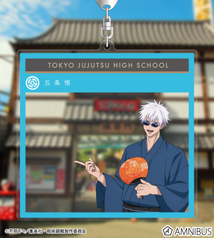 TVアニメ「呪術廻戦」×「浅草花やしき」のコラボレーションアイテム「描き下ろし 五条 悟 浴衣ver. BIGアクリルキーホルダー」の登場です。