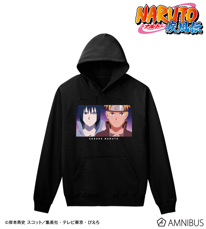 うずまきナルト、うちはサスケの印象的なシーンをパーカーに仕上げました。