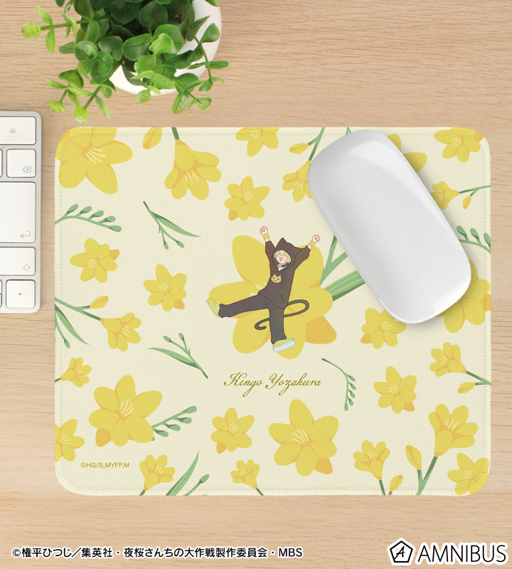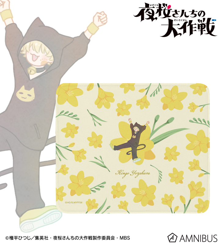 TVアニメ『夜桜さんちの大作戦』からオフィスアイテムをテーマにしたデザインライン「ar-Unity」のアイテム「夜桜嫌五 Botania マウスパッド」の登場です。