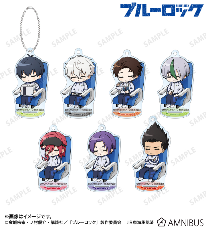 TVアニメ『ブルーロック』×「推し旅/JR東海」のコラボレーションアイテム「トレーディング ちびキャラ 新幹線でうたたねver. アクリルスタンドキーホルダー ver.A」の登場です。