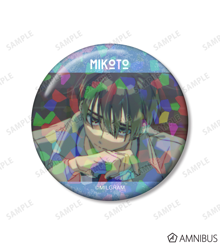 ミコトの印象的なシーンをホログラム加工を施した缶バッジ2個セットに仕上げました。