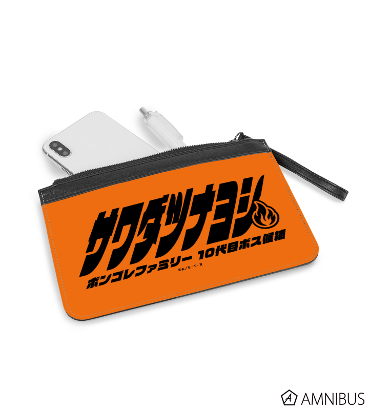 沢田 綱吉のイメージモチーフと肩書きを、PUレザーフラットポーチに仕上げました。