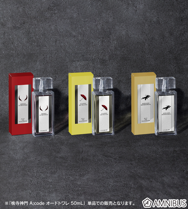 TVアニメ「桃源暗鬼」×「A:code」のコラボレーションアイテム「桃寺神門 A:code オードトワレ 50mL」の登場です。
