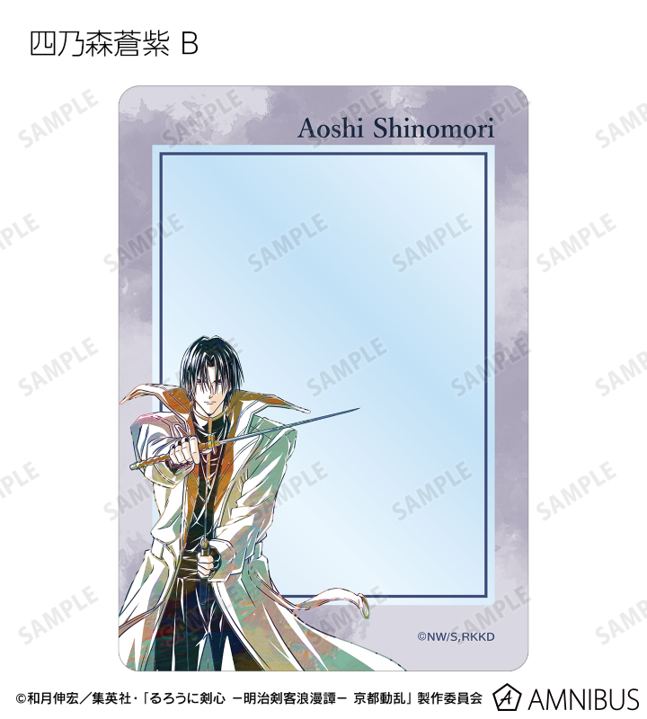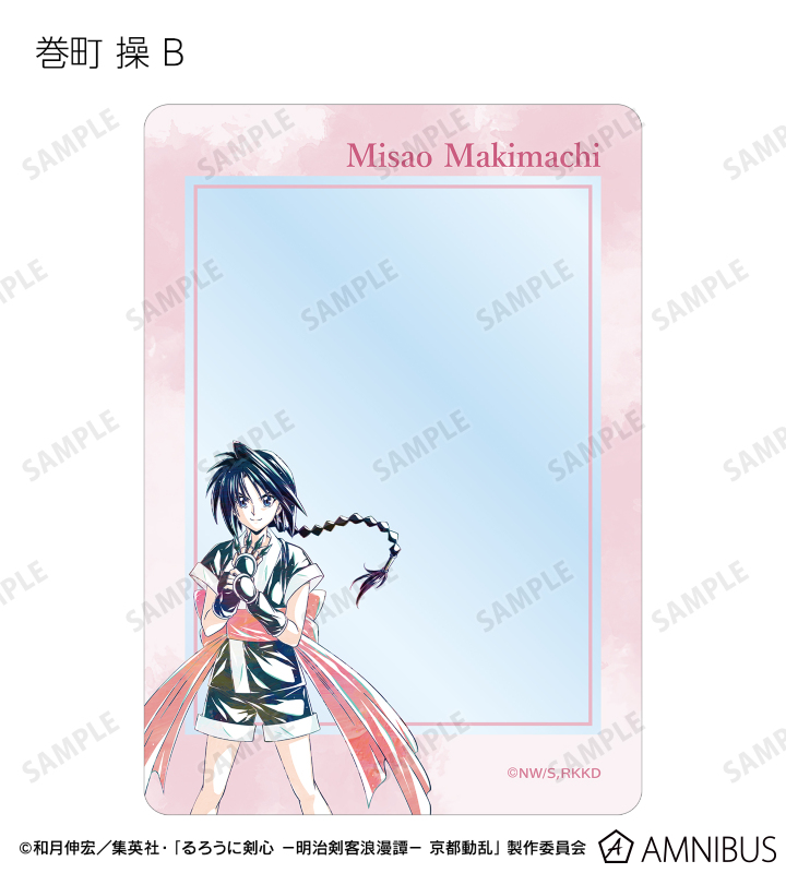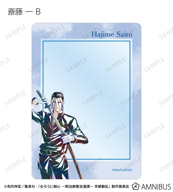 緋村剣心、相楽左之助、斎藤 一、巻町 操、四乃森蒼紫、瀬田宗次郎、志々雄真実を新たなタッチで魅力的に表現し、B8硬質カードケースに仕上げました。