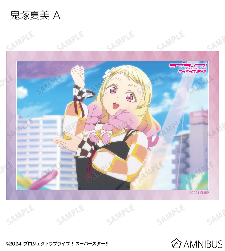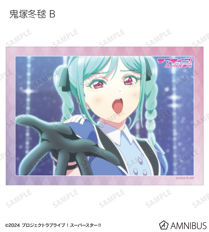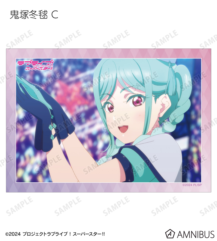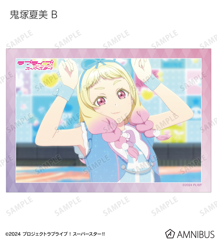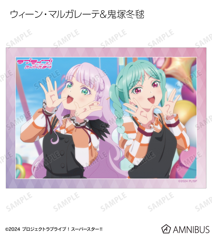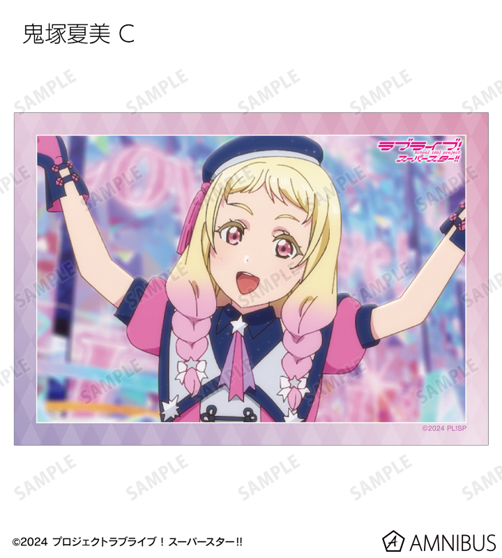澁谷かのん、唐 可可、嵐 千砂都、平安名すみれ、葉月 恋、桜小路きな子、米女メイ、若菜四季、鬼塚夏美、ウィーン・マルガレーテ、鬼塚冬毬の印象的なシーンと作品ロゴを、ブロマイド3枚セットに仕上げました。
