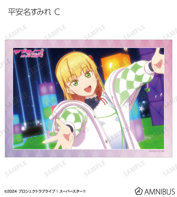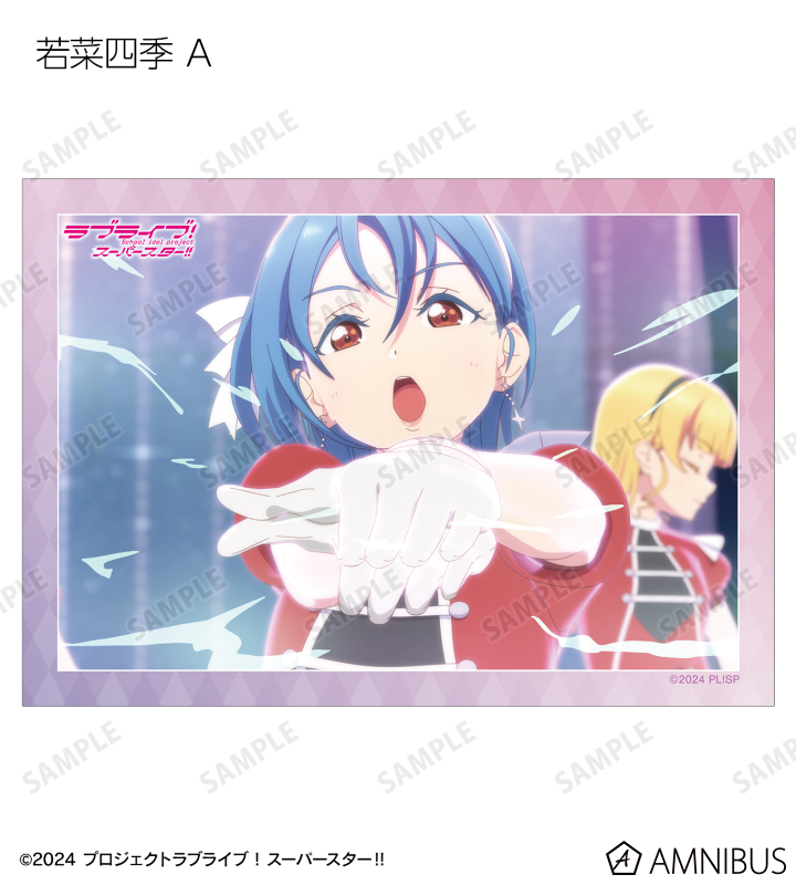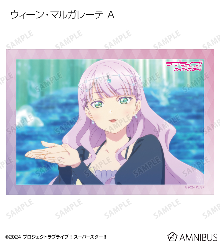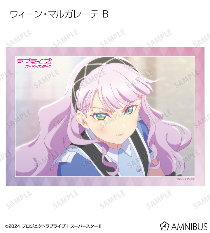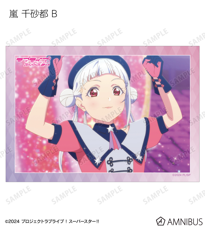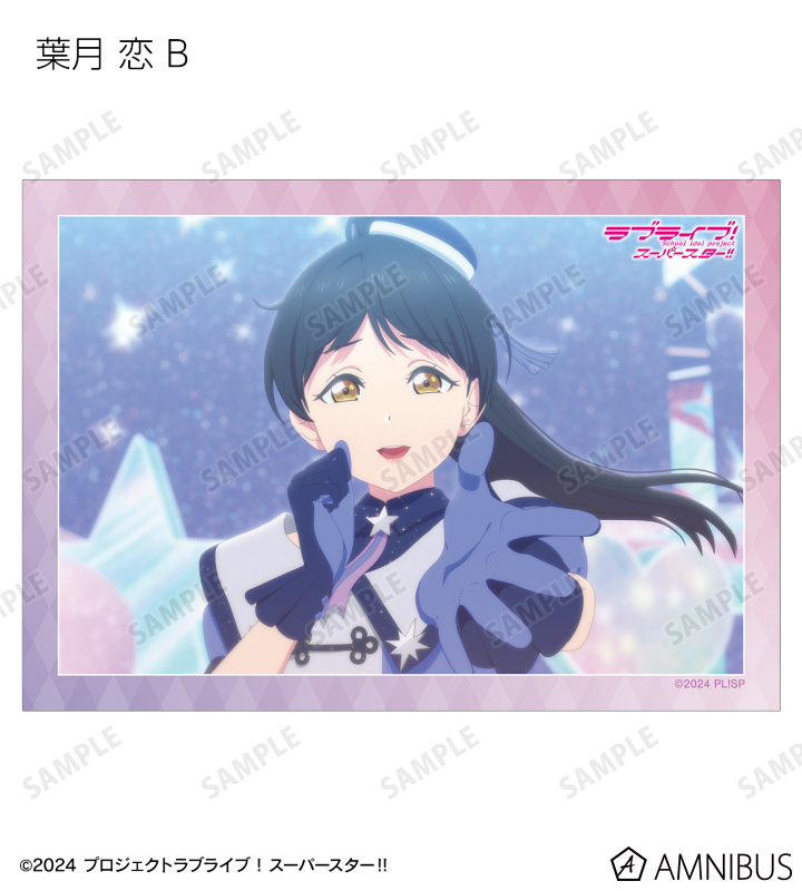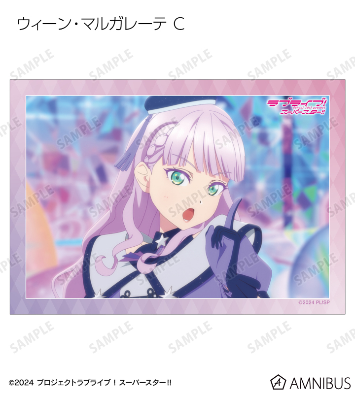 澁谷かのん、唐 可可、嵐 千砂都、平安名すみれ、葉月 恋、桜小路きな子、米女メイ、若菜四季、鬼塚夏美、ウィーン・マルガレーテ、鬼塚冬毬の印象的なシーンと作品ロゴを、ブロマイド3枚セットに仕上げました。