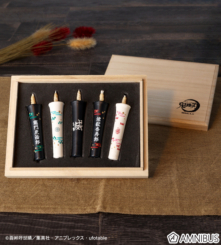 アニメ「鬼滅の刃」から「京ローソク」のオリジナルアイテム「京ローソク桐箱入り5本セット」の登場です。