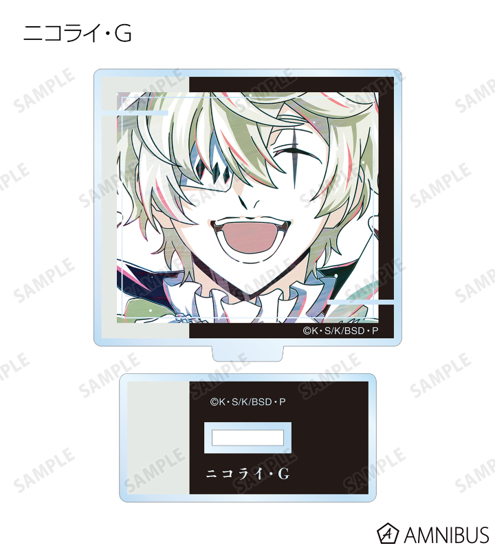 中島敦、太宰治、江戸川乱歩、宮沢賢治、福沢諭吉、 フョードル・D、ニコライ・G、シグマ、ブラムのイラストを新たなタッチで魅力的に表現し、アクリルスタンドに仕上げました。