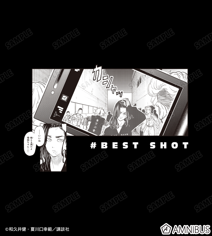 「映える男だよ 場地ちゃん…♡」のコマの横にはベストショットのハッシュタグを添えました。