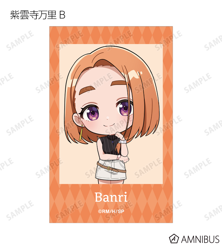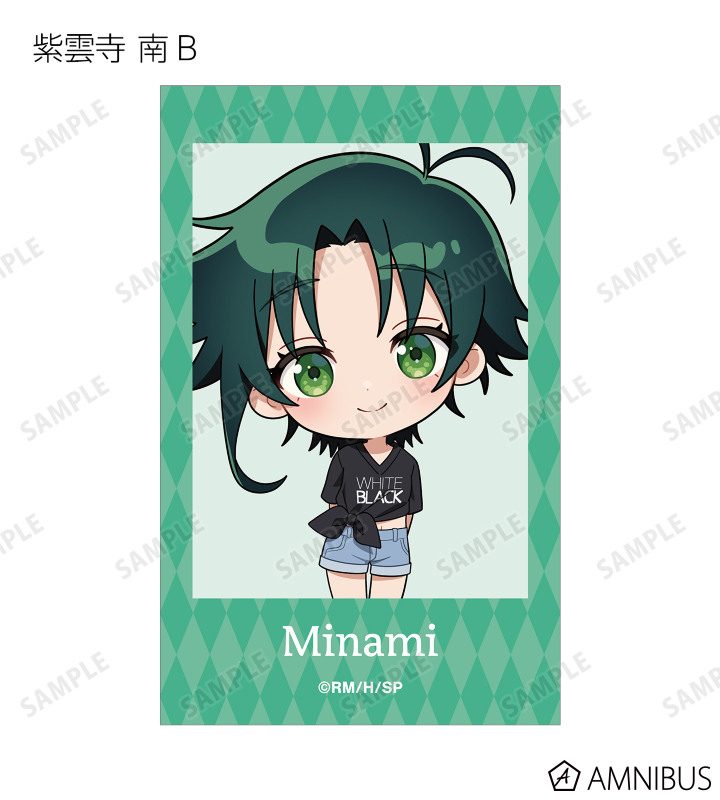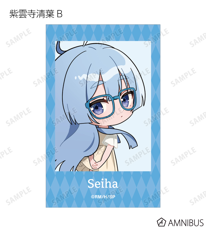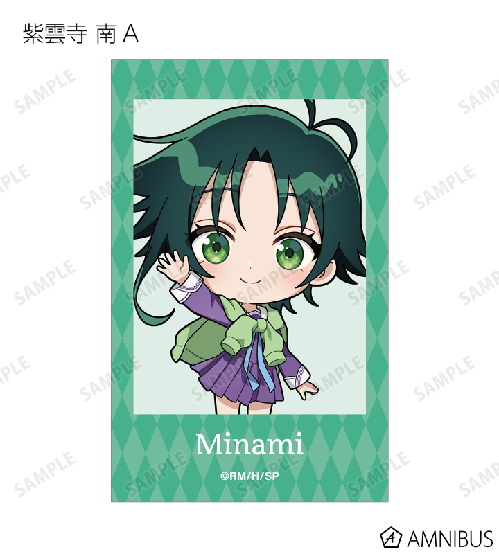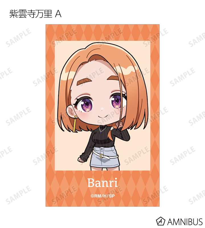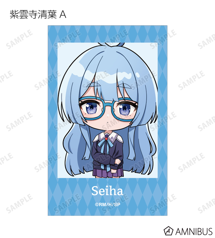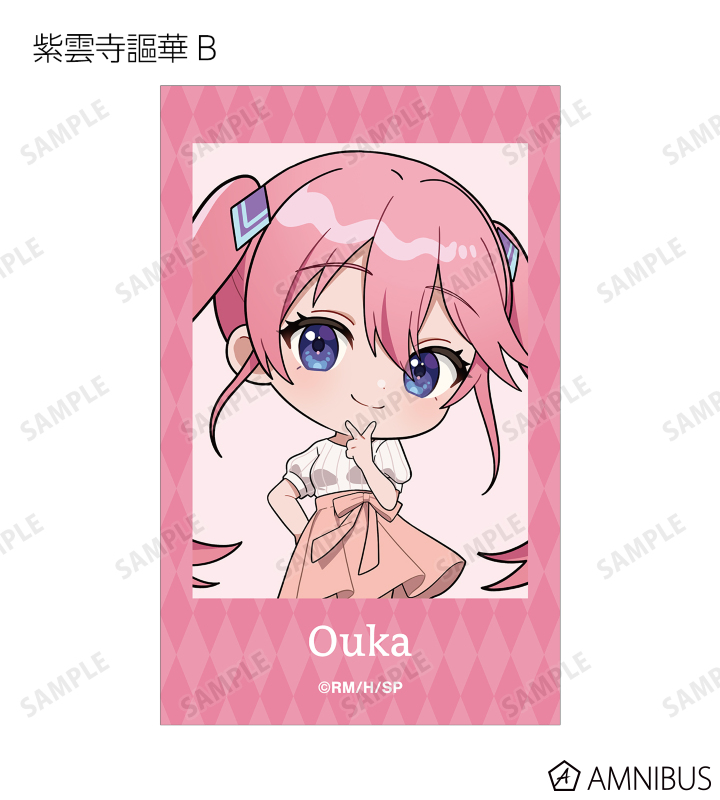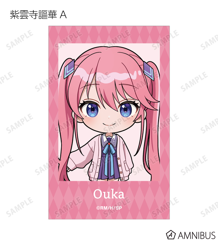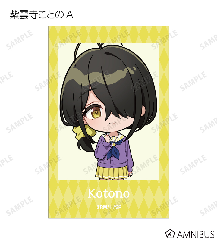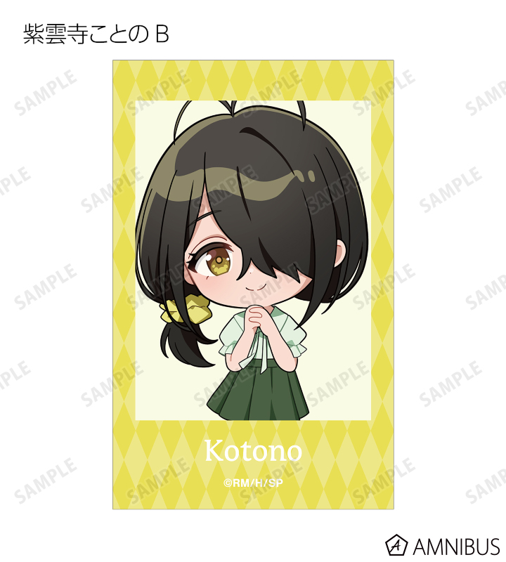 紫雲寺万里、紫雲寺清葉、紫雲寺謳華、紫雲寺 南、紫雲寺ことのの公式ちびキャライラストをメインにデザインし、イラストカードに仕上げました。