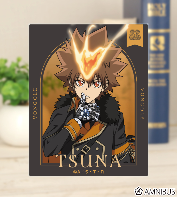 沢田 綱吉 、リボーン、獄寺 隼人、山本 武、雲雀 恭弥、六道 骸(10年後)、XANXUS (10年後)、スペルビ・スクアーロ(10年後)、ベルフェゴール(10年後)、フランの描き下ろしイラストをアクリルカードに仕上げました。
