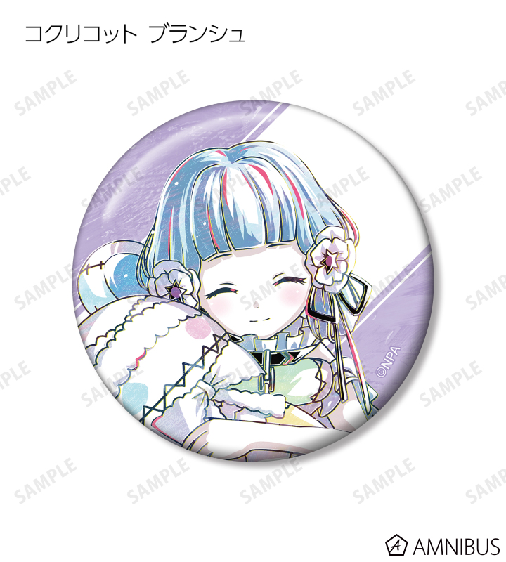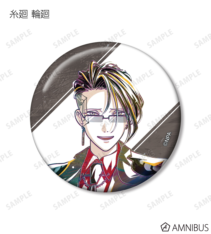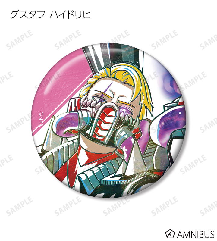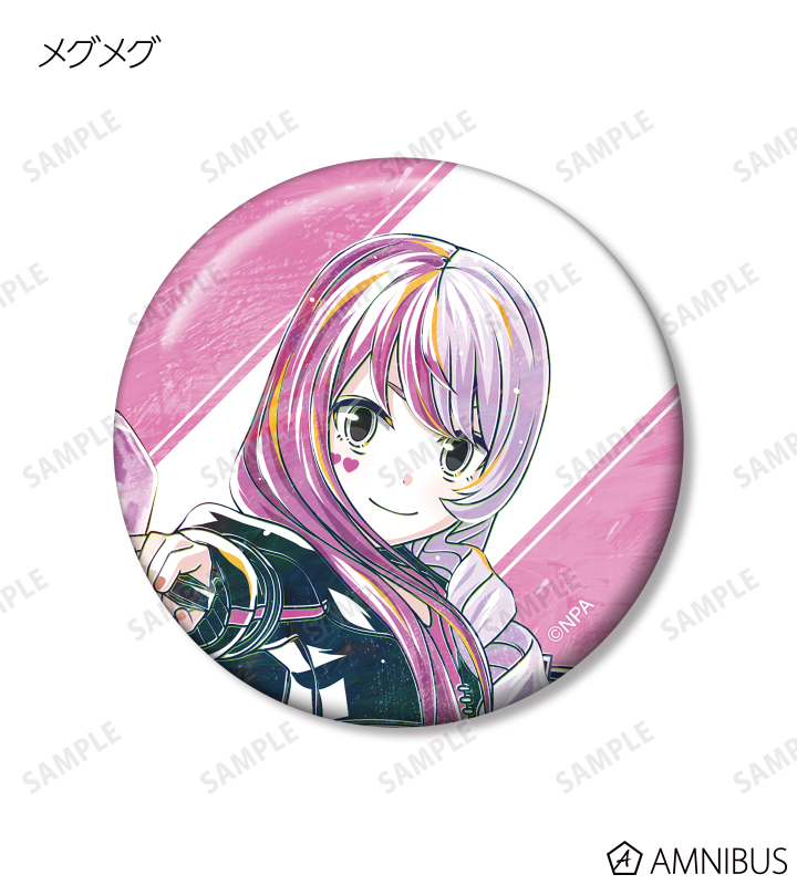 双挽 乃保、桜華 忠臣、グスタフ ハイドリヒ、ニコラ テスラ、コクリコット ブランシュ、メグメグ、イスタカ、ゲームバズーカガール、糸廻 輪廻のイラストを新たなタッチで魅力的に表現し、缶バッジに仕上げました。