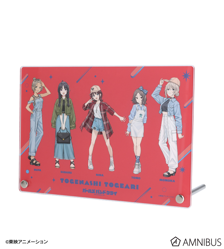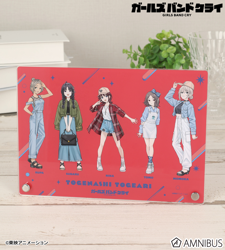 『ガールズバンドクライ』×「カラオケの鉄人」のコラボレーションアイテム「描き下ろし トゲナシトゲアリ 集合 私服ver. A5アクリルパネル」の登場です。