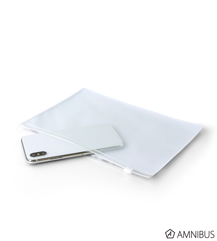 丈夫で汚れにくいビニール素材で、小物などを収納してかさばらず持ち運びいただけます。