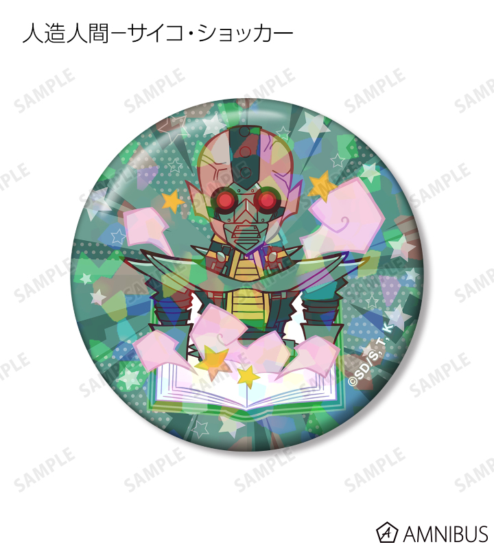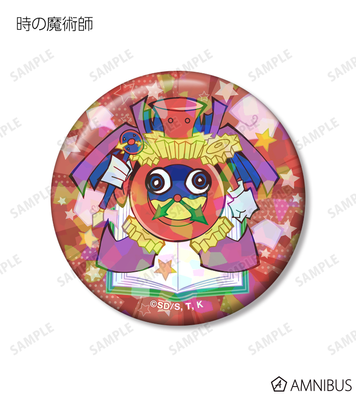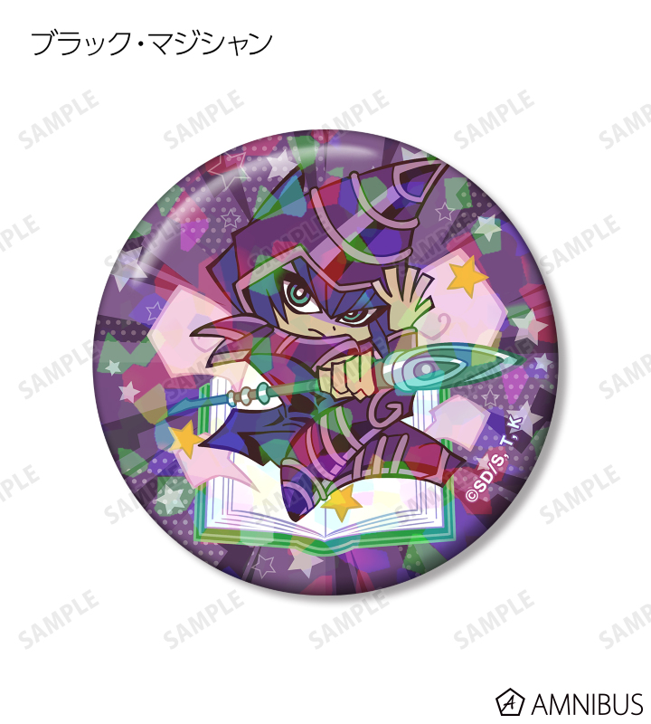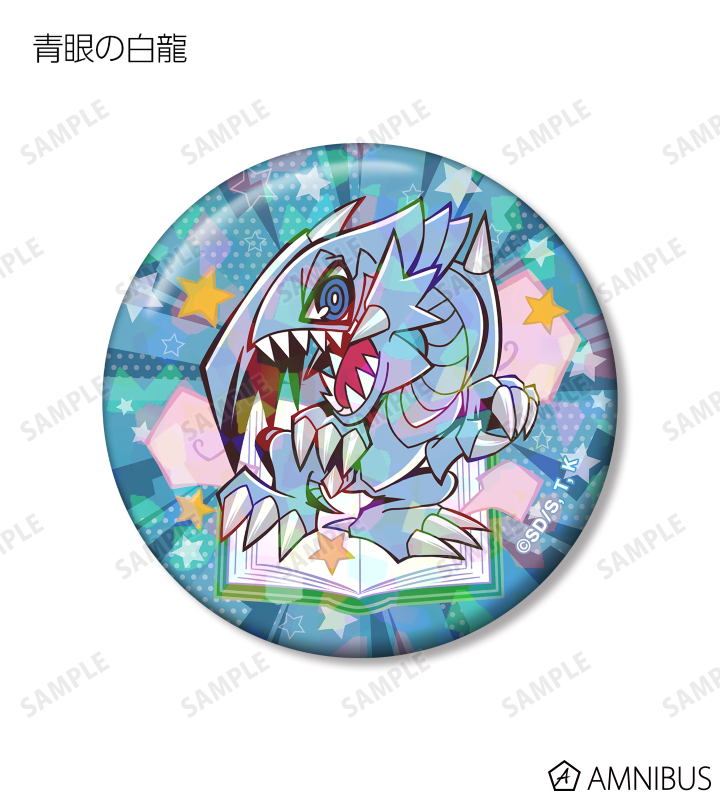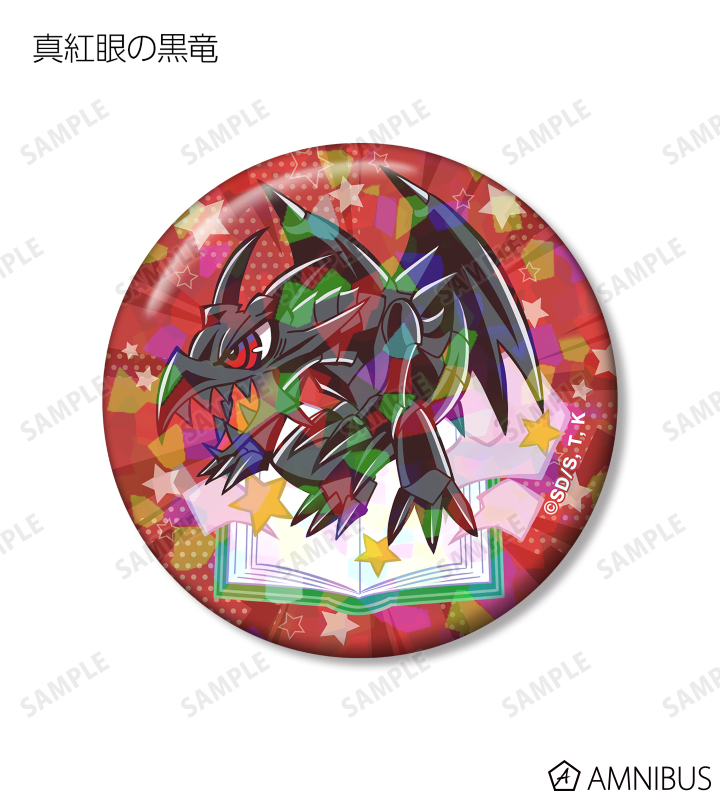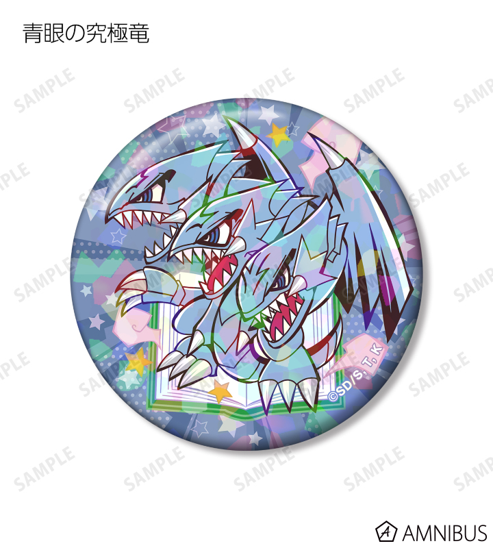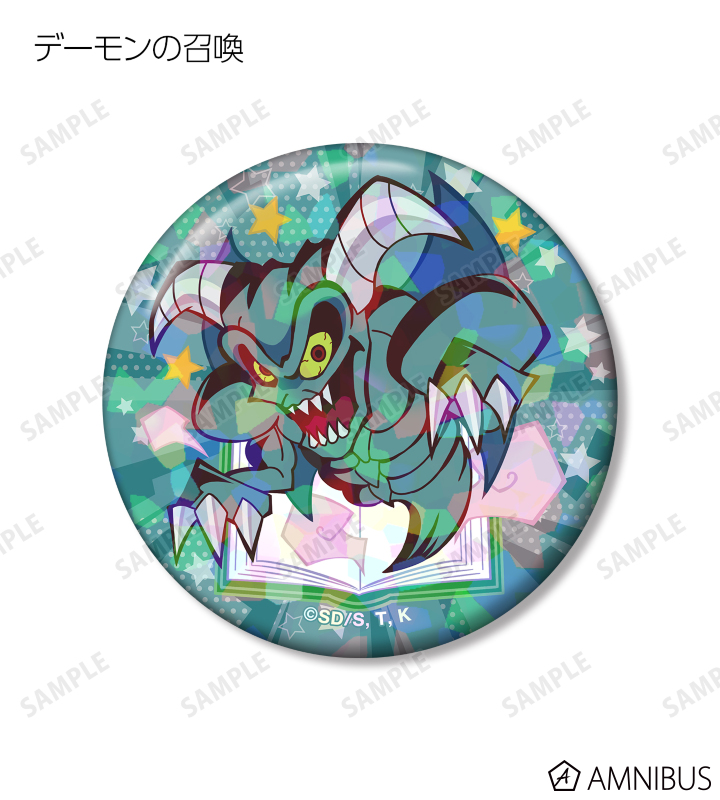 青眼の白龍、ブラック・マジシャン、クリボー、デーモンの召喚、時の魔術師、真紅眼の黒竜、青眼の究極竜、人造人間-サイコ・ショッカー、ブラック・マジシャン・ガールのイラストをトゥーンモンスターになったイメージで描き起こし、ホログラム加工を施した缶バッジに仕上げました。