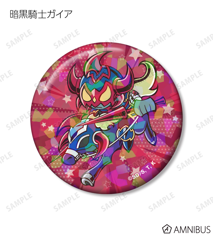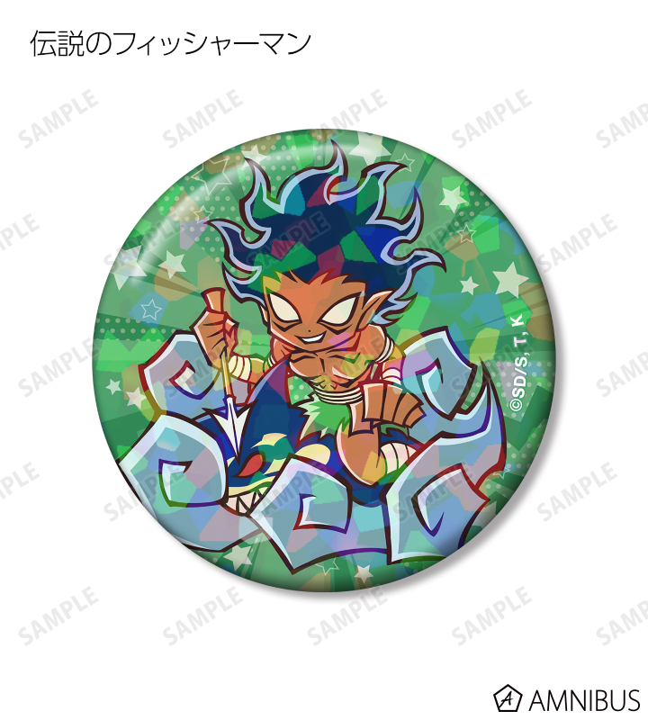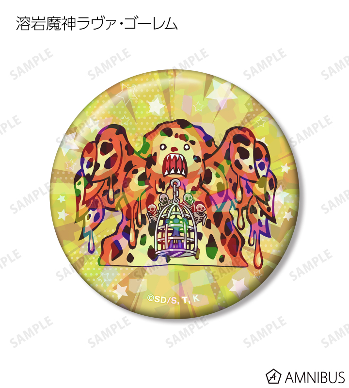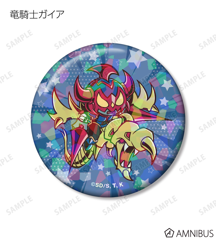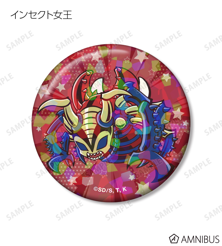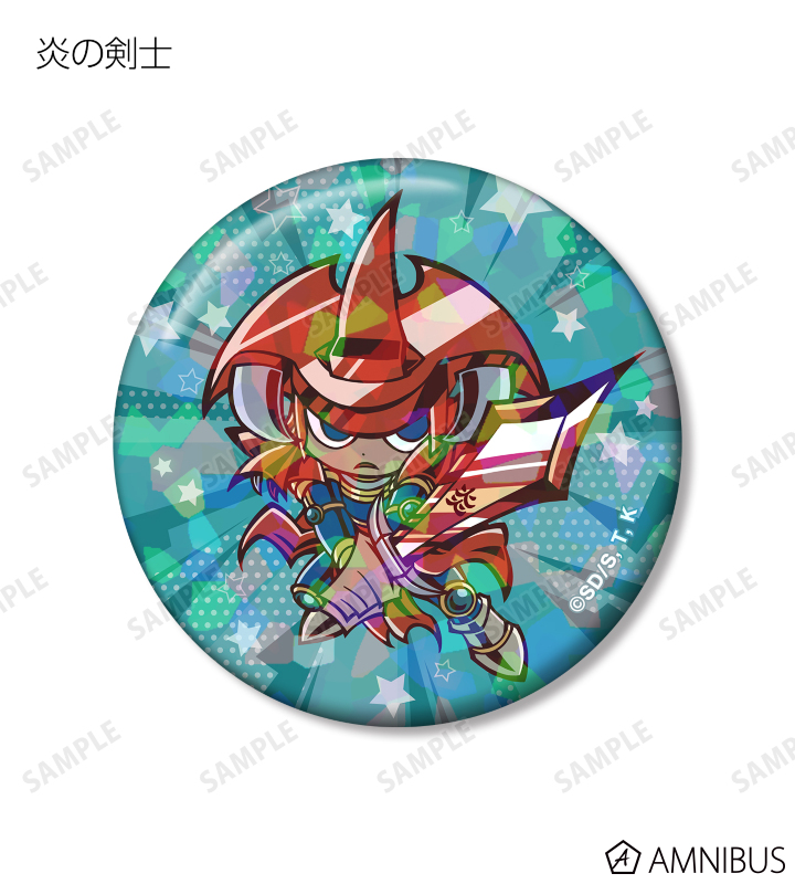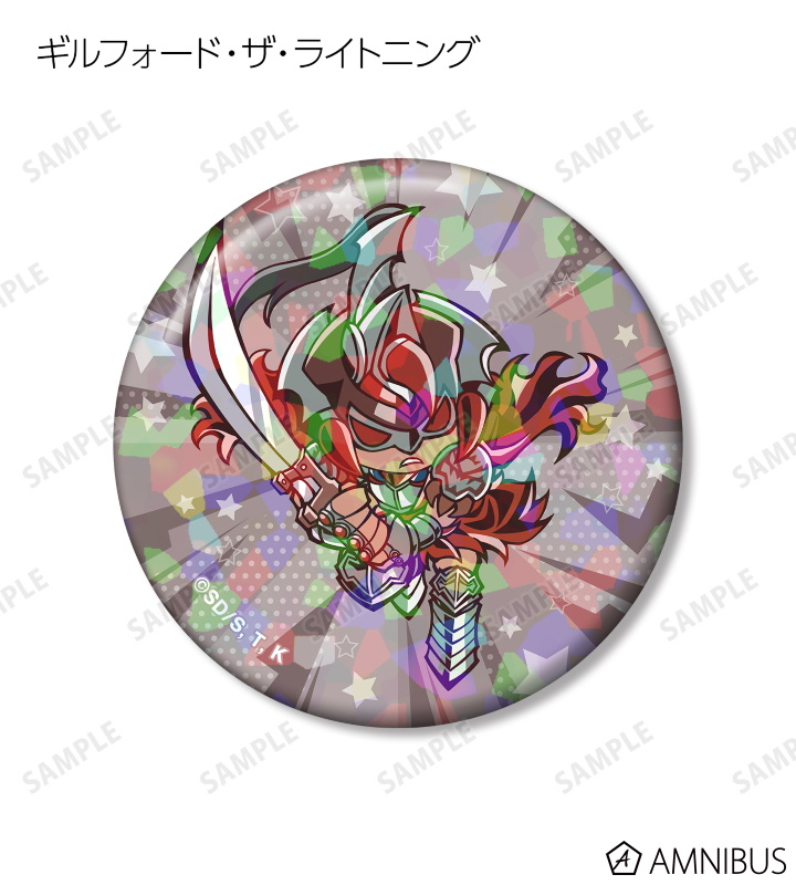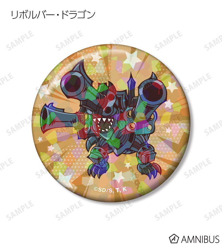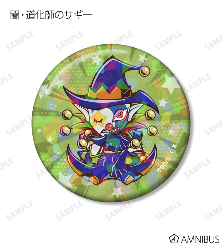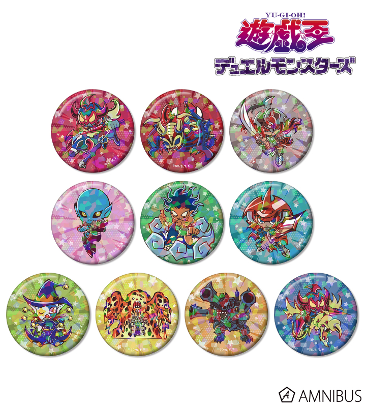 暗黒騎士ガイア、インセクト女王、ギルフォード・ザ・ライトニング、ダーク・ネクロフィア、伝説のフィッシャーマン、炎の剣士、闇・道化師のサギー、溶岩魔神ラヴァ・ゴーレム、リボルバー・ドラゴン、竜騎士ガイアのイラストをトゥーンモンスターになったイメージで描き起こし、ホログラム加工を施した缶バッジに仕上げました。