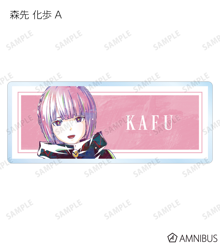 森先 化歩、谷置 狸眼、朝主 派流、夜河 世界、輪廻 此処のイラストを新たなタッチで魅力的に表現し、アクリルネームプレートに仕上げました。