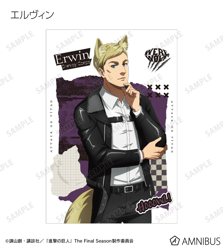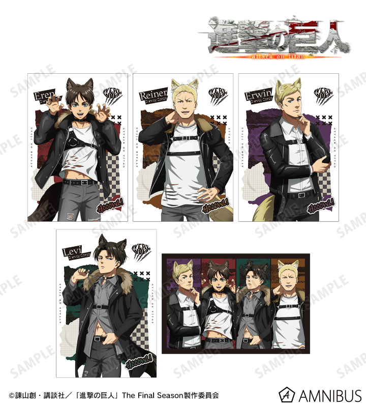 エレン、ライナー、エルヴィン、リヴァイの描き下ろしイラストをポストカード5枚セットに仕上げました。