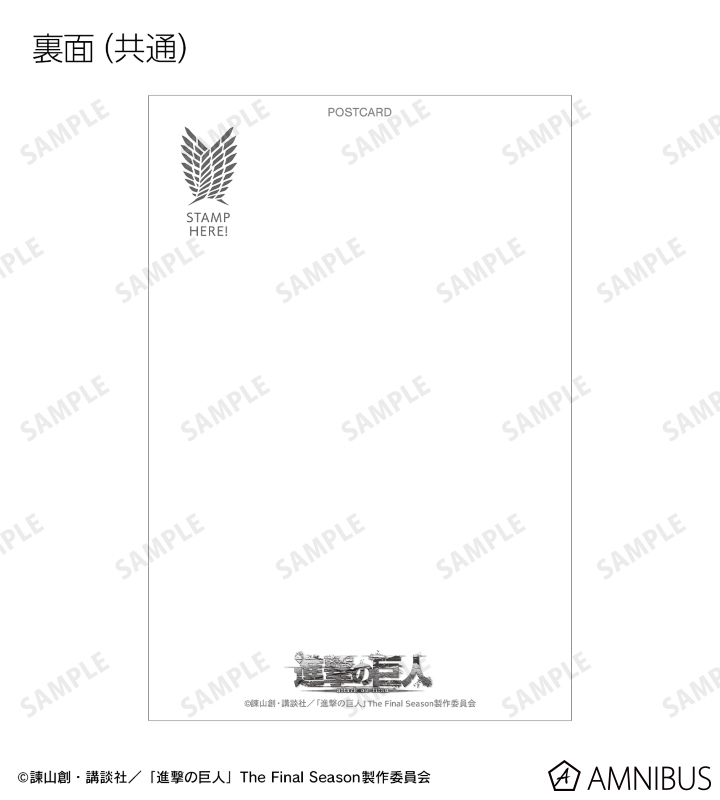 TVアニメ『進撃の巨人』より、ポストカード5枚セットの登場です。