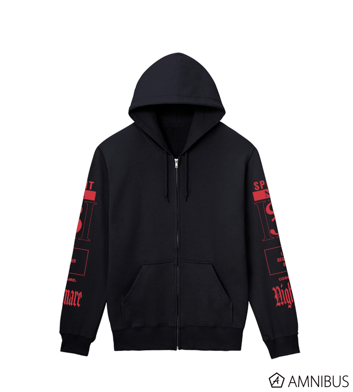 精霊のナンバー、識別名、台詞をジップパーカーに仕上げました。