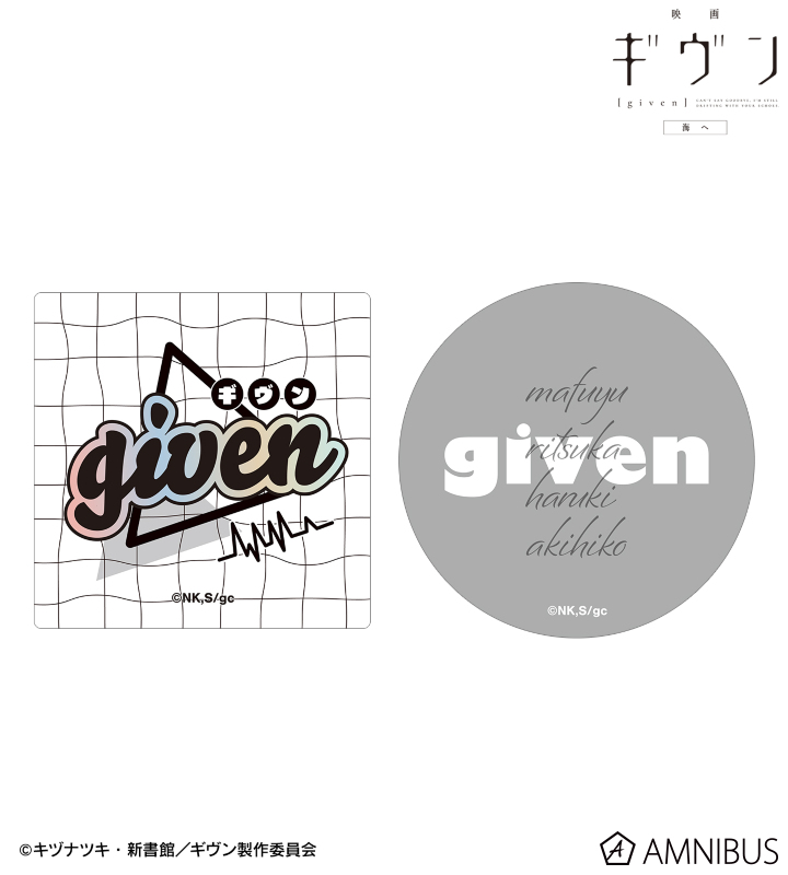 『映画 ギヴン 海へ』から日常で使える統一感をテーマにしたデザインシリーズ「ar-Unity」のアイテム「ギヴン ar-Unity ダイカットステッカー2枚セット」の登場です。