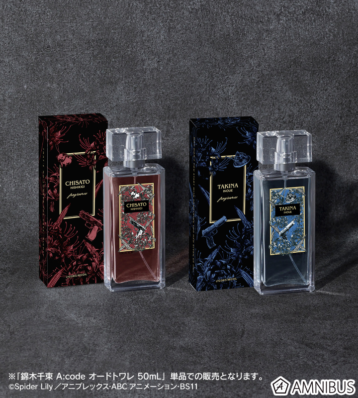 TVアニメ「リコリス・リコイル」×「A:code」のコラボレーションアイテム「錦木千束 A:code オードトワレ 50mL」の登場です。