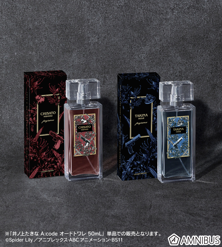 TVアニメ「リコリス・リコイル」×「A:code」のコラボレーションアイテム「井ノ上たきな A:code オードトワレ 50mL」の登場です。