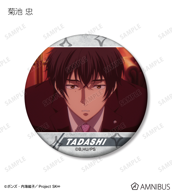 喜屋武 暦、馳河 ランガ、知念 実也、比嘉 広海、桜屋敷 薫、南城 虎次郎、神道 愛之介、菊池 忠の印象的なシーンをマットな手触りの缶バッジに仕上げました。
