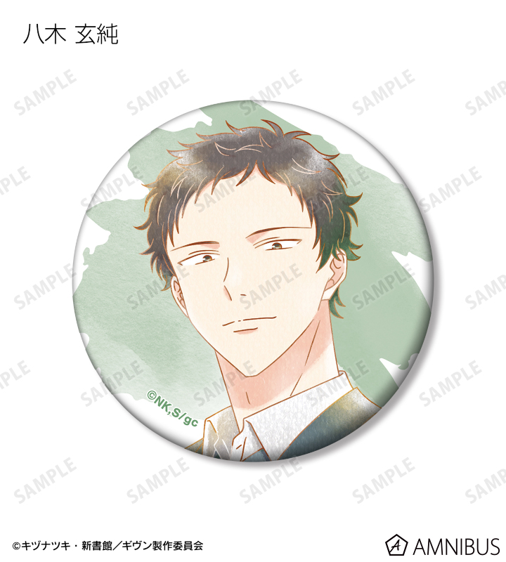 佐藤 真冬、上ノ山 立夏、中山 春樹、梶 秋彦、鹿島 柊、八木 玄純、村田 雨月のイラストを新たなタッチで魅力的に表現し、水彩風デザインのマットな手触りの缶バッジに仕上げました。