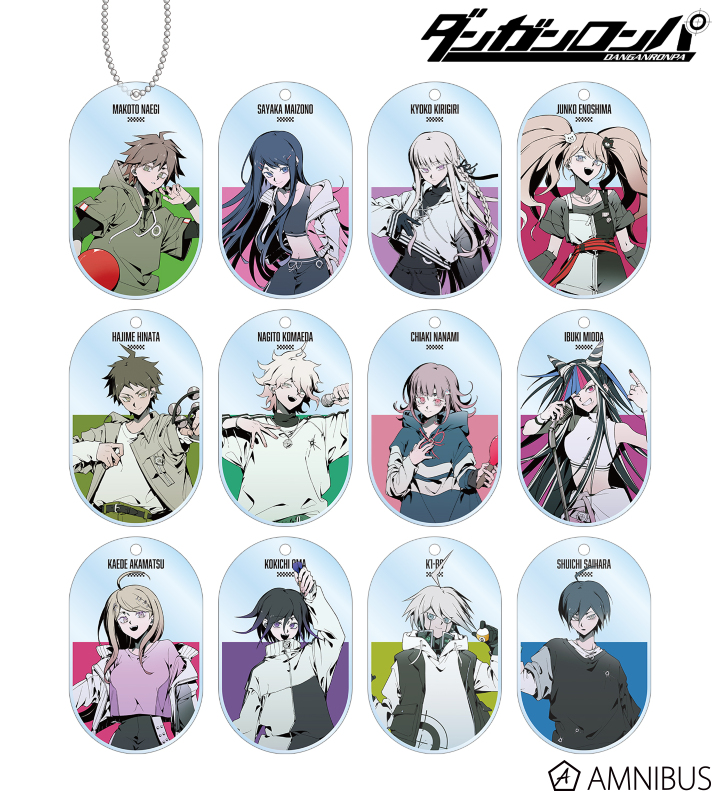 しづさん描き下ろしイラストの苗木誠、舞園さやか、霧切響子、江ノ島盾子、日向創、狛枝凪斗、七海千秋、澪田唯吹、赤松楓、王馬小吉、キーボ、最原終一をアクリルキーホルダーに仕上げました。