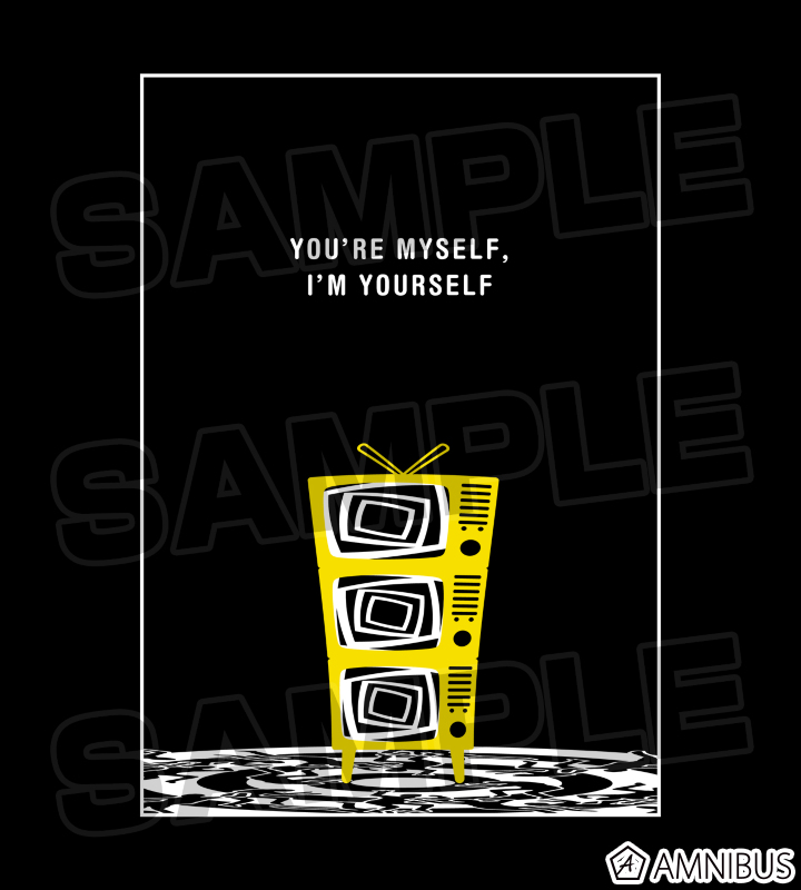 キーアイテムであるテレビとテレビの世界、「我は汝、汝は我」の英訳を合わせてフレーミングしたデザインをフロントにレイアウトしました。