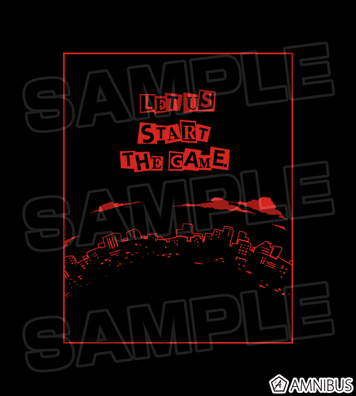 舞台である東京の街並みと「LET US START THE GAME」の文字を合わせてフレーミングしたデザインをフロントにレイアウトしました。