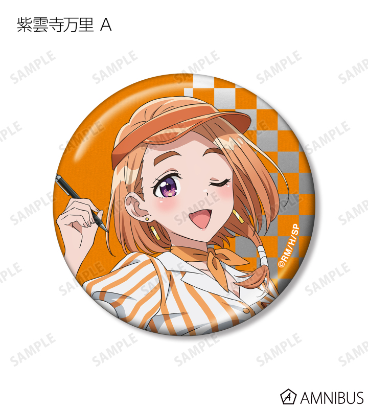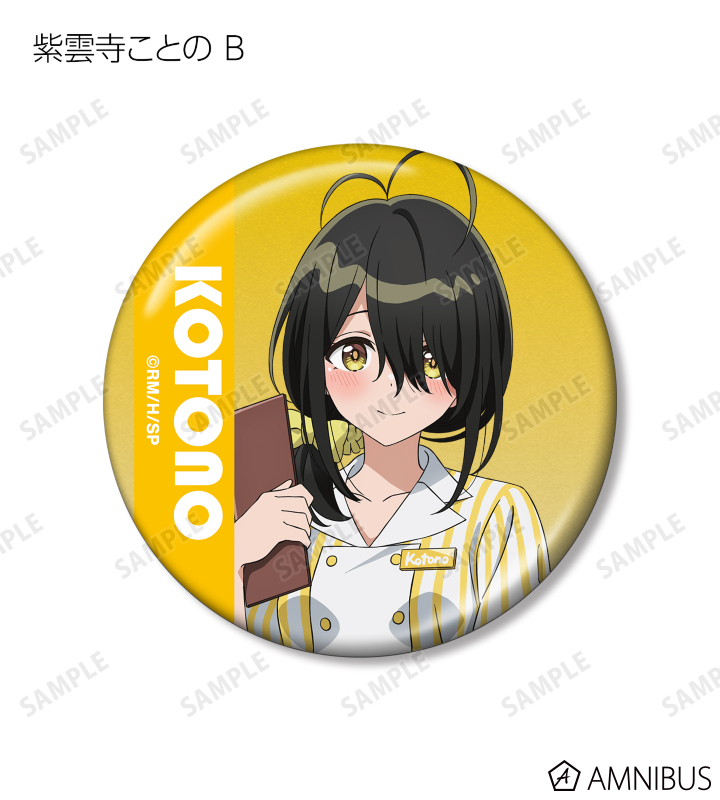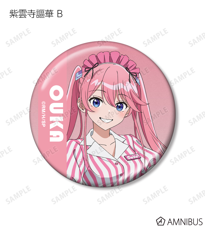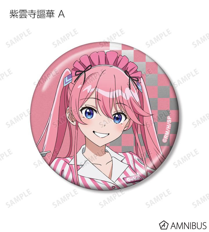 紫雲寺万里、紫雲寺清葉、紫雲寺謳華、紫雲寺 南、紫雲寺ことのの描き下ろしイラストをメタリック仕様の缶バッジに仕上げました。