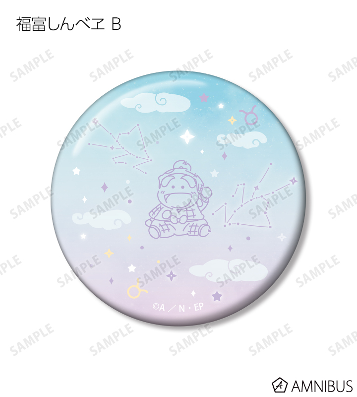 福富しんべヱのちびキャライラストと星座を組み合わせて、缶バッジ2個セットに仕上げました。