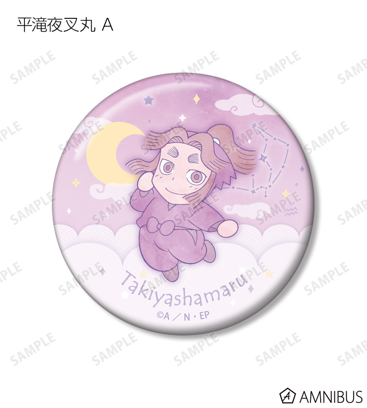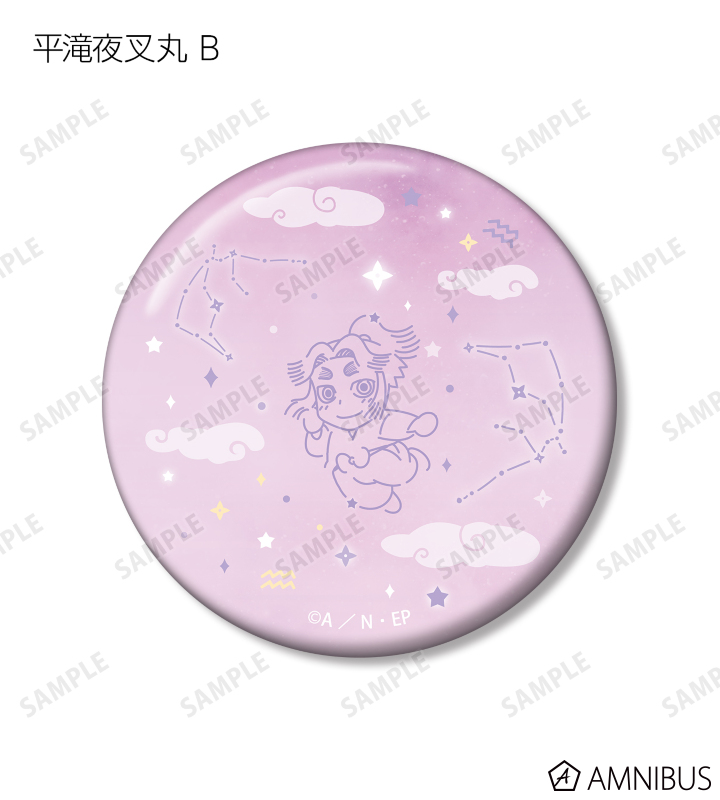平滝夜叉丸のちびキャライラストと星座を組み合わせて、缶バッジ2個セットに仕上げました。