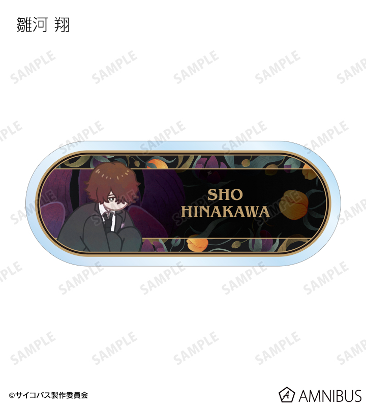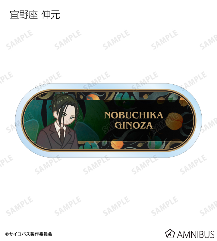 常守 朱、狡噛 慎也、宜野座 伸元、六合塚 弥生、唐之杜 志恩、霜月 美佳、雛河 翔、須郷 徹平、花城 フレデリカ、雑賀 譲二、煇・ワシリー・イグナトフのイラストをボタニカルデザインに落とし込んで繊細なタッチで新たに描き起こし、アクリルネームプレートに仕上げました。