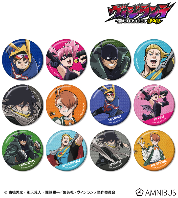TVアニメ『ヴィジランテ –僕のヒーローアカデミア ILLEGALS-』より、トレーディンググリッター缶バッジの登場です。