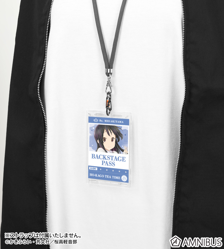 秋山 澪のイラストを新たなタッチで魅力的に表現し、バックステージパス風のカラビナ付きカード型アクリルキーホルダーに仕上げました。