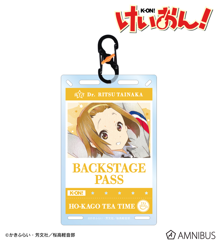 田井中 律のイラストを新たなタッチで魅力的に表現し、バックステージパス風のカラビナ付きカード型アクリルキーホルダーに仕上げました。