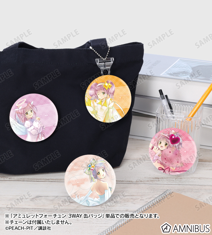 アミュレットフォーチュンのイラストを、3WAY缶バッジに仕上げました。