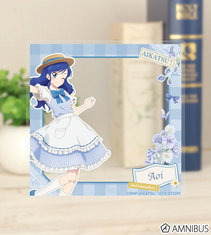 霧矢あおいの描き下ろしイラストを、コラージュ風デザインのアクリルフォト2枚セットに仕上げました。