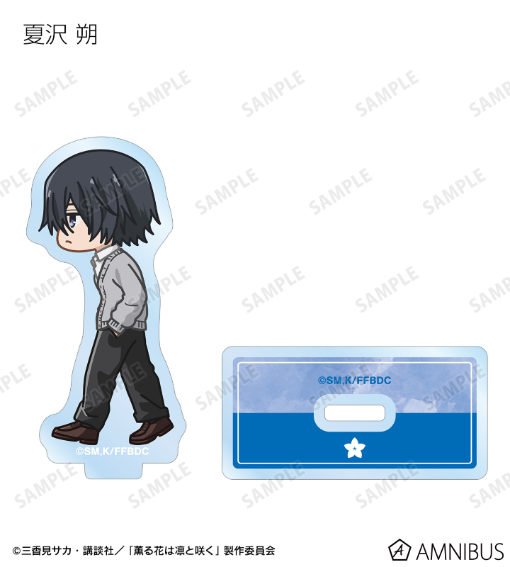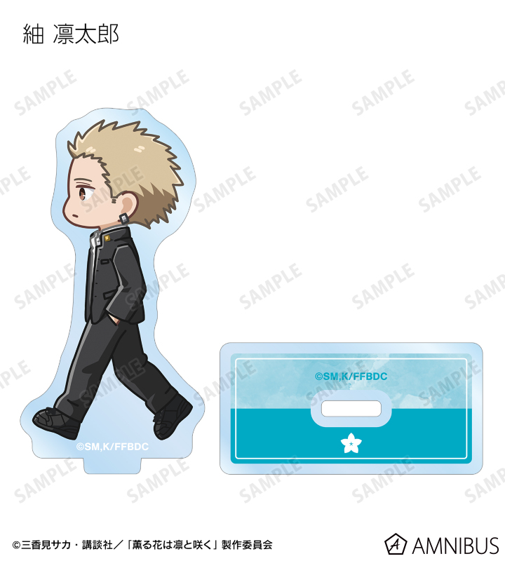TVアニメ「薫る花は凛と咲く」より、トレーディング ちびとこ アクリルスタンドの登場です。紬 凛太郎、和栗薫子、宇佐美翔平、夏沢 朔、依田絢斗、保科 昴が歩いているちびキャラを新たに描き起こし、アクリルスタンドに仕上げました。