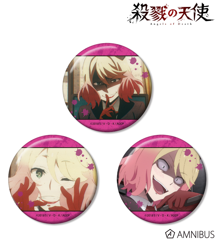 『殺戮の天使』より、缶バッジ3個セットの登場です。