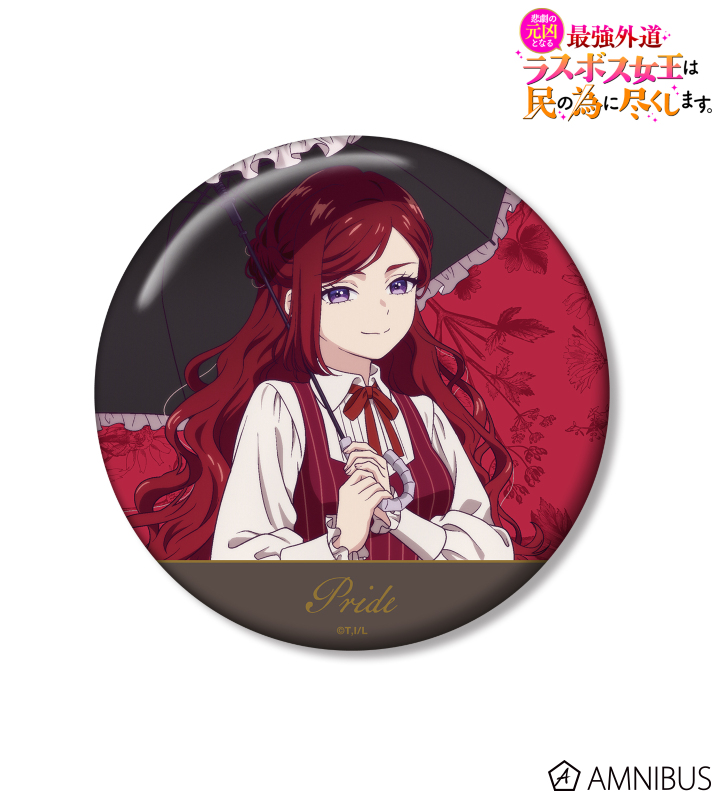 TVアニメ『悲劇の元凶となる最強外道ラスボス女王は民の為に尽くします。』より、100mm缶バッジ缶バッジの登場です。