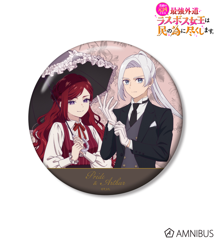 TVアニメ『悲劇の元凶となる最強外道ラスボス女王は民の為に尽くします。』より、100mm缶バッジ缶バッジの登場です。
