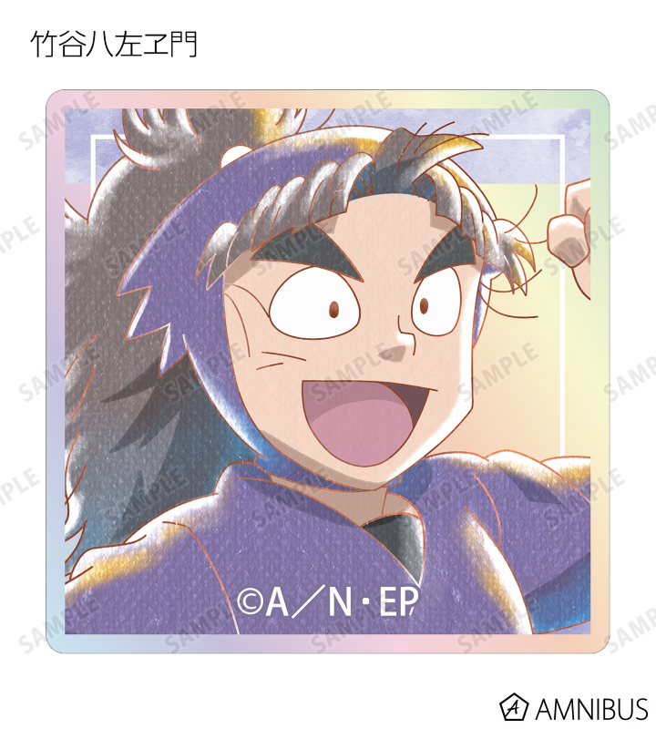 福富しんべヱ、土井半助、浦風藤内、三反田数馬、斉藤タカ丸、竹谷八左ヱ門、善法寺伊作、食満留三郎、雑渡昆奈門のイラストを新たなタッチで魅力的に表現し、オーロラアクリルタイルに仕上げました。
