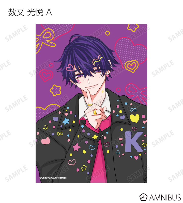 ちふゆ先生描き下ろしイラストの桐ヶ谷 悠然、佐江城 銀河、数又 光悦をブロマイドに仕上げました。