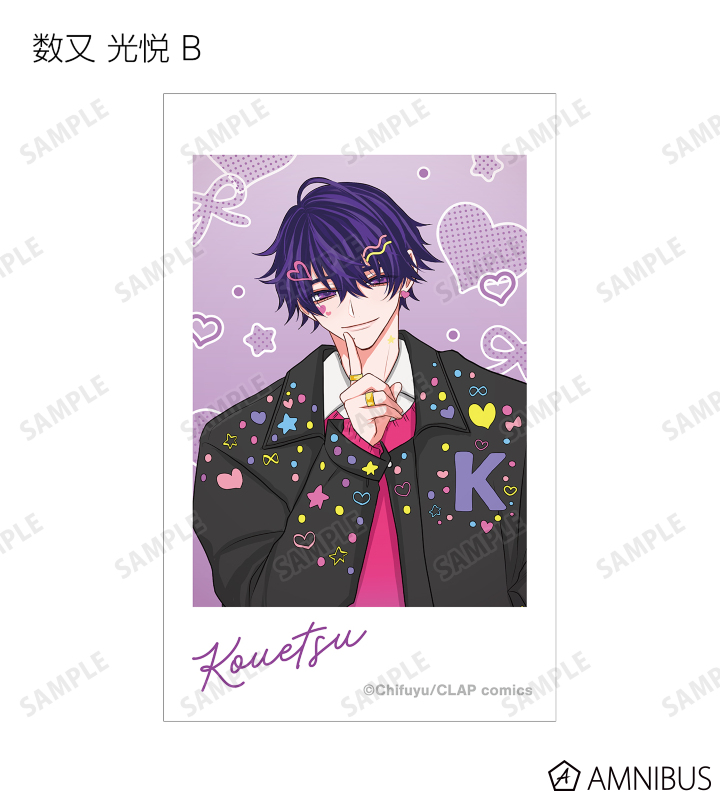 ちふゆ先生描き下ろしイラストの桐ヶ谷 悠然、佐江城 銀河、数又 光悦をイラストカードに仕上げました。