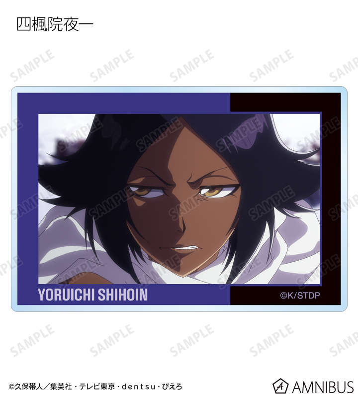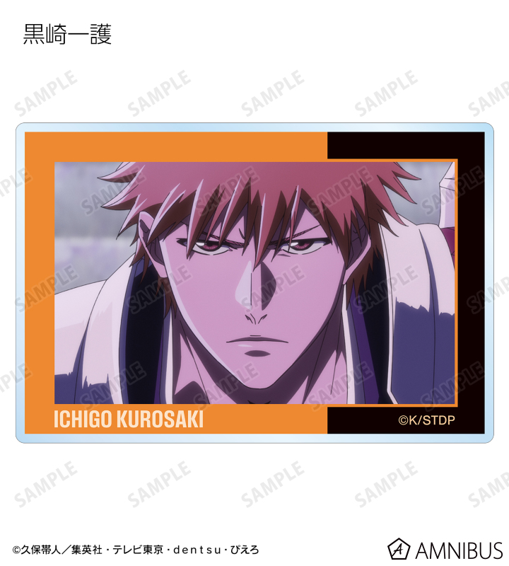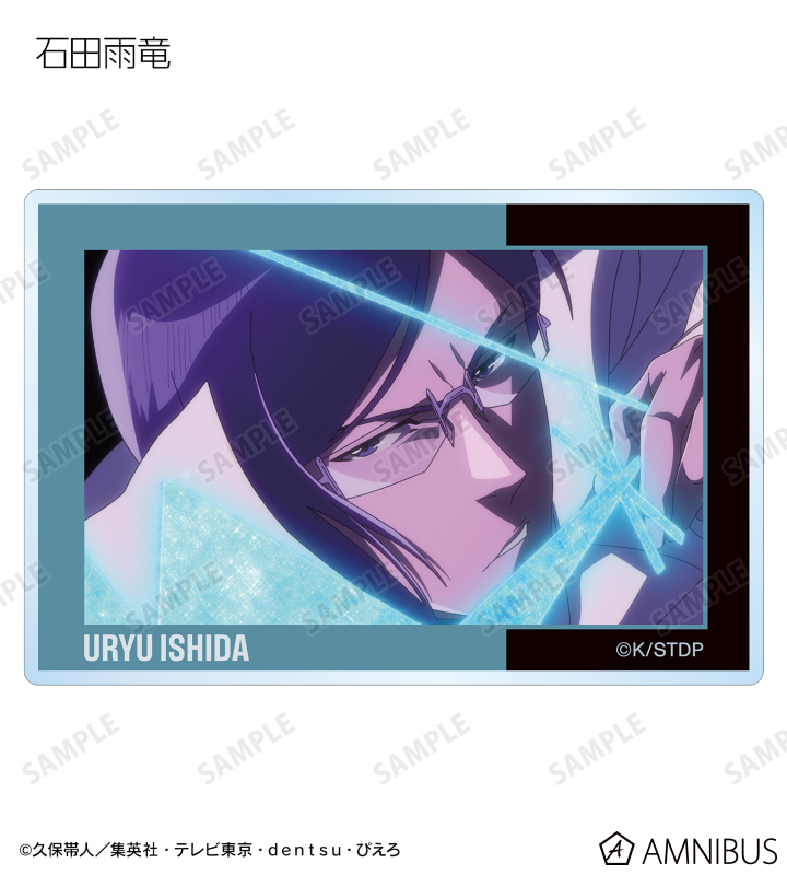 黒崎一護、浦原喜助、四楓院夜一、京楽春水、平子真子、阿散井恋次、更木剣八、涅マユリ、藍染惣右介、グリムジョー・ジャガージャック、毒ヶ峰リルカ、ユーハバッハ、石田雨竜、ユーグラム・ハッシュヴァルト、バズビーの印象的なシーンをアクリルカードに仕上げました。